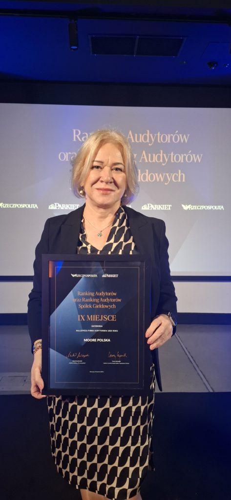 Kolejnym ważnym osiągnięciem jest utrzymanie wysokiej pozycji w Rankingu Firm Audytorskich Badających Spółki na Giełdzie Papierów Wartościowych w Warszawie. W edycji 2025 roku Moore Polska uplasowało się, jak rok wcześniej, na 10. miejscu, co oznacza naszą stabilizację w rozpoznawalności w sektorze spółek publicznych i potwierdza, że jesteśmy coraz częściej wybieranym partnerem dla wymagających klientów działających na rynku kapitałowym.